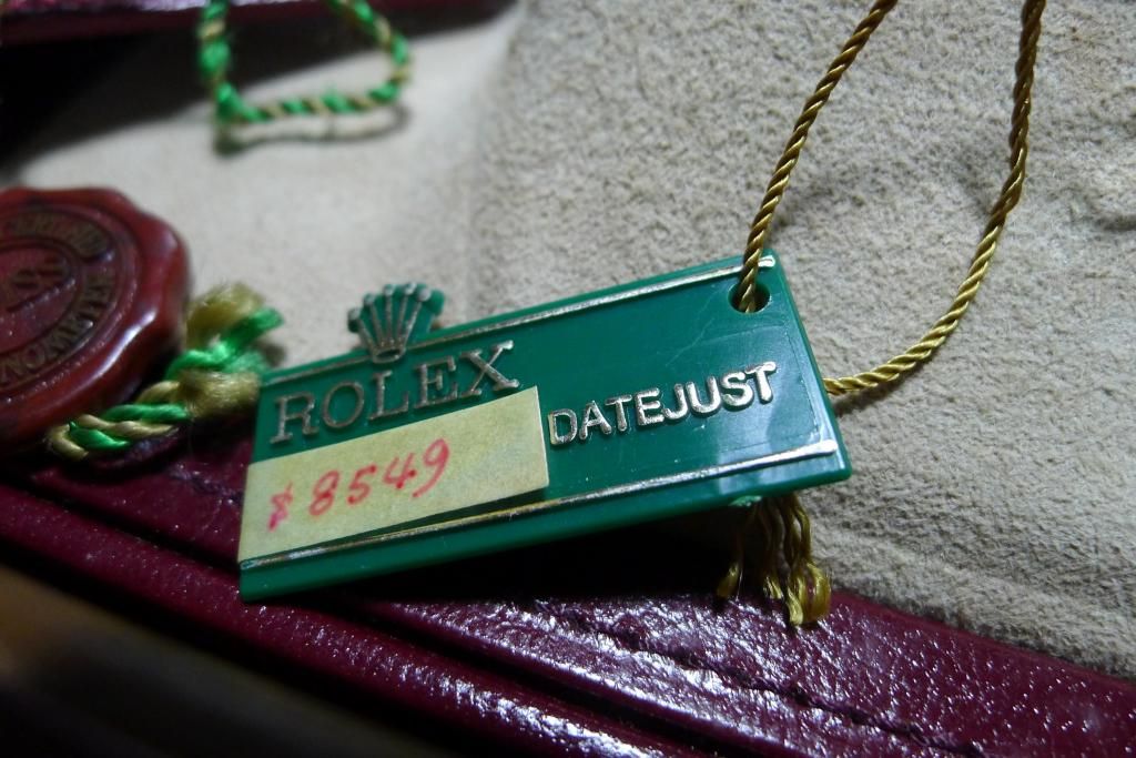 In fig 28, we see a mid 1980s Green Tag with the word Datejust written over it with the Retail Price Tag. The reverse side of the Green Tag has the information of the Watch Model number and serial number.