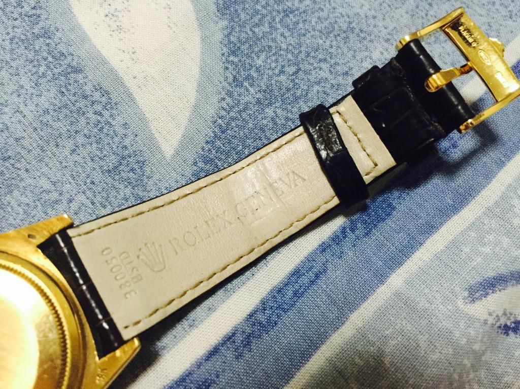 11) Strap: Original Rolex Alligator Leather Strap with Rolex Plated Gold Buckle (Note: I still have the Original 750 Solid Gold Buckle which I keep while using the Plated Gold Buckle for daily wear)